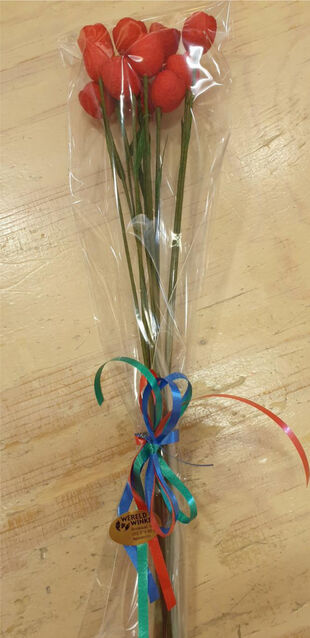 | Een glas uit de ECO Design Collectie, een schaaltje van acaciahout en 150 gram Johnny Cashewnoten. Over deze ongebrande Fairtrade noten: 30% van de noten breekt tijdens het pellen, maar gebroken noten zijn net zo lekker! | Dit bosje met 12 tulpjes is gemaakt van de cocon van de zijderups. Verkrijgbaar in de kleur rood of gemengd. € 6.95*) |
